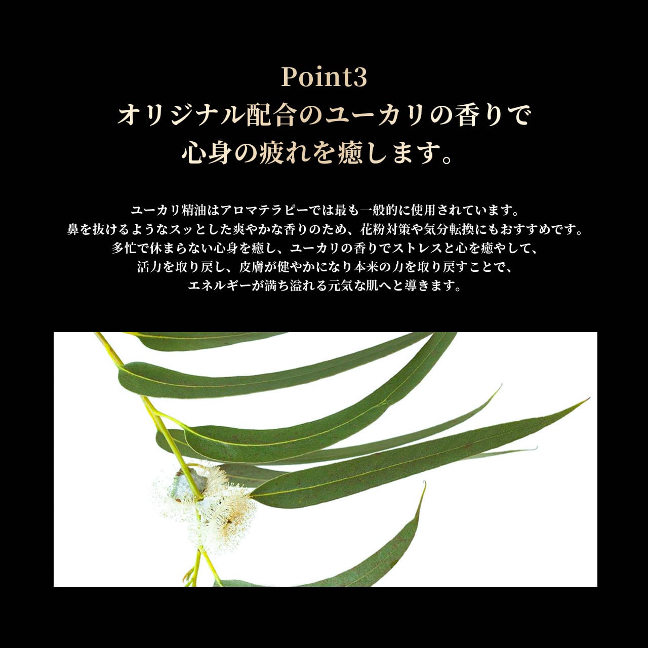 Point03 オリジナル配合ユーカリの香りで心身の疲れを癒します。